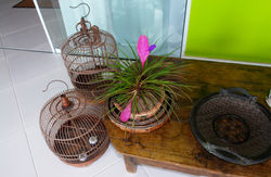 Casa principal com 04 suítes, amplo salão integrado a cozinha, lavabo, varanda com lounge externo, rica em detalhes da arquitetura e decoração com artesanato brasileiro, pátio integrado ao salão, área com churrasqueira, fogão e forno à lenha, integrado a deck sobre grande lago com peixes ornamentais.